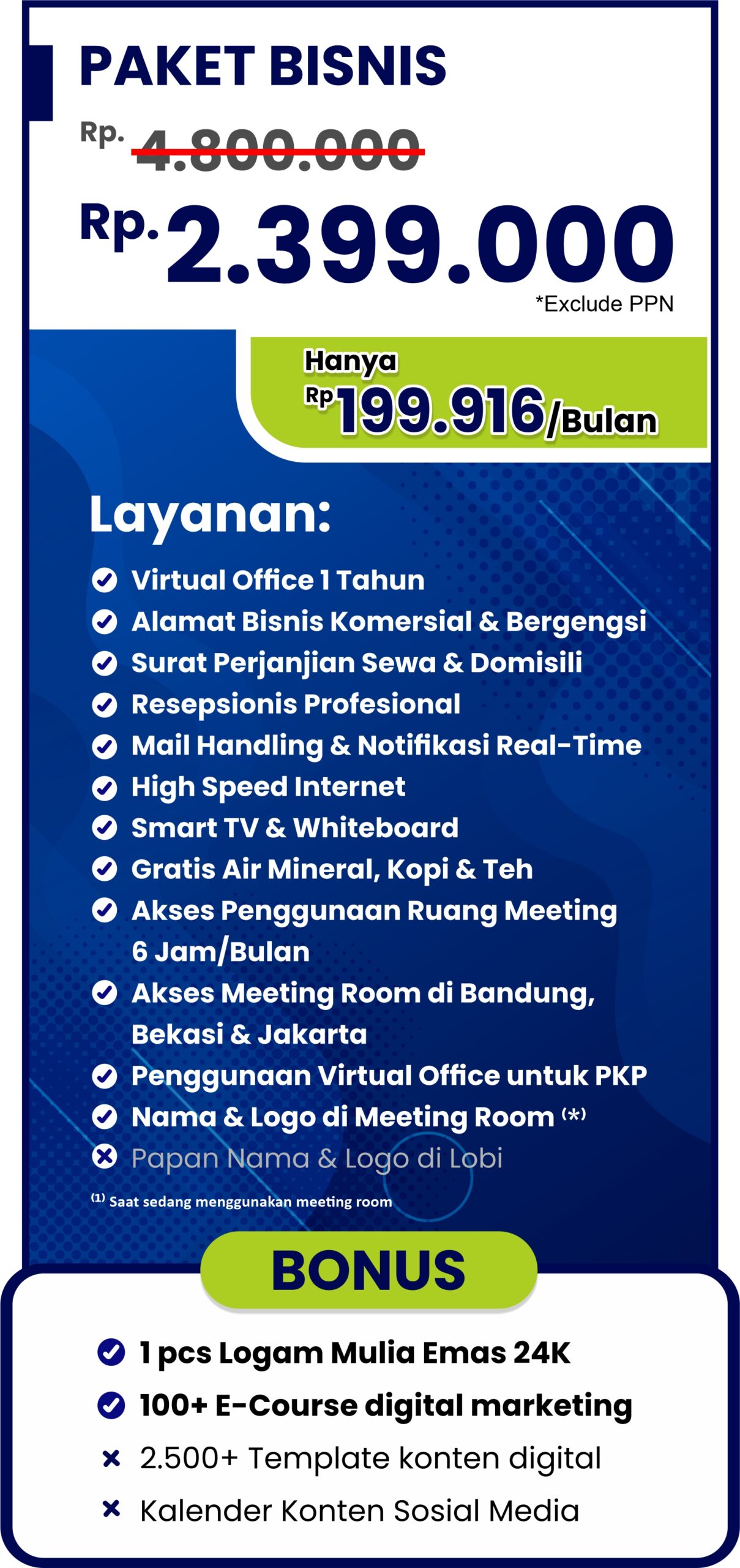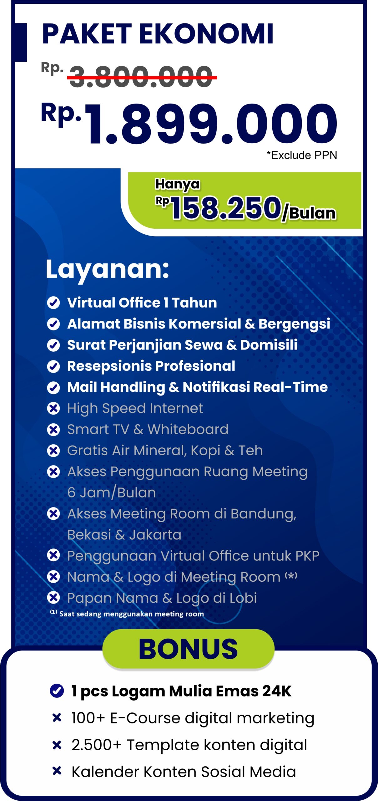 Sewa 1 Alamat, Bebas Meeting di 3 Kota: Bandung, Bekasi & Jakarta