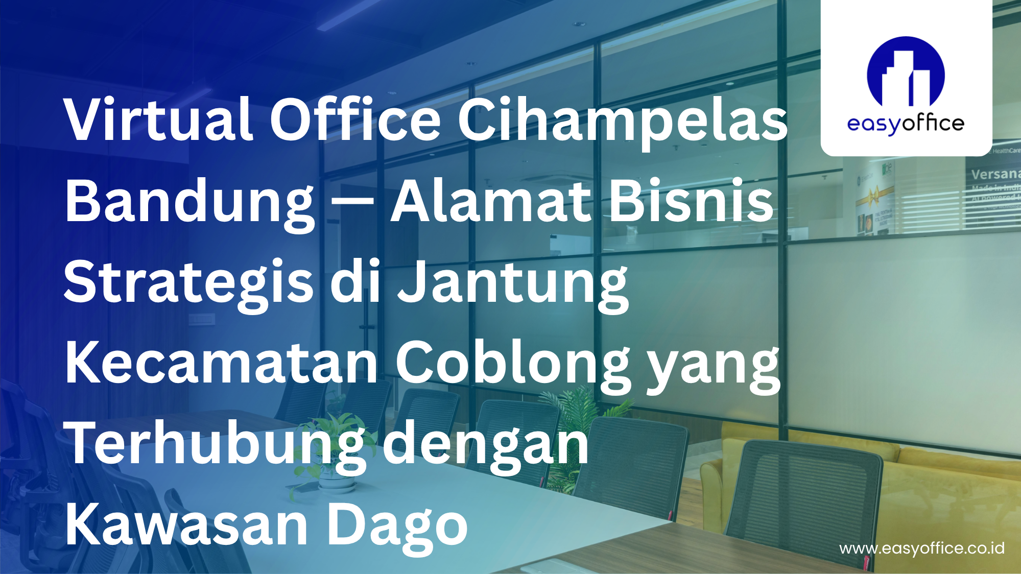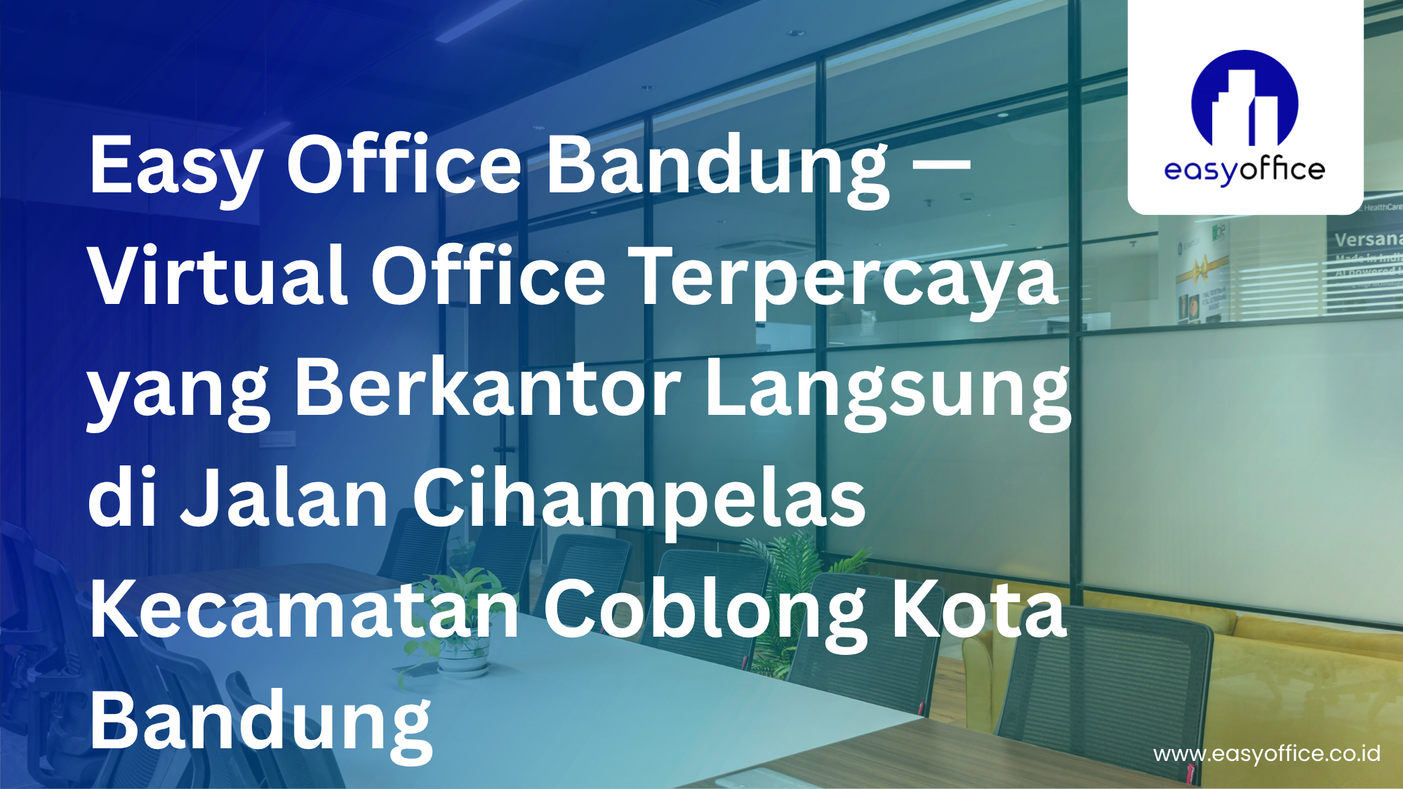 EasyOffice adalah penyedia layanan virtual Office di Bandung, Bekasi, dan Jakarta yang menyediakan alamat bisnis profesional, ruang meeting, layanan resepsionis, serta pengelolaan surat untuk mendukung pertumbuhan bisnis dengan biaya yang lebih hemat dan terjangkau.