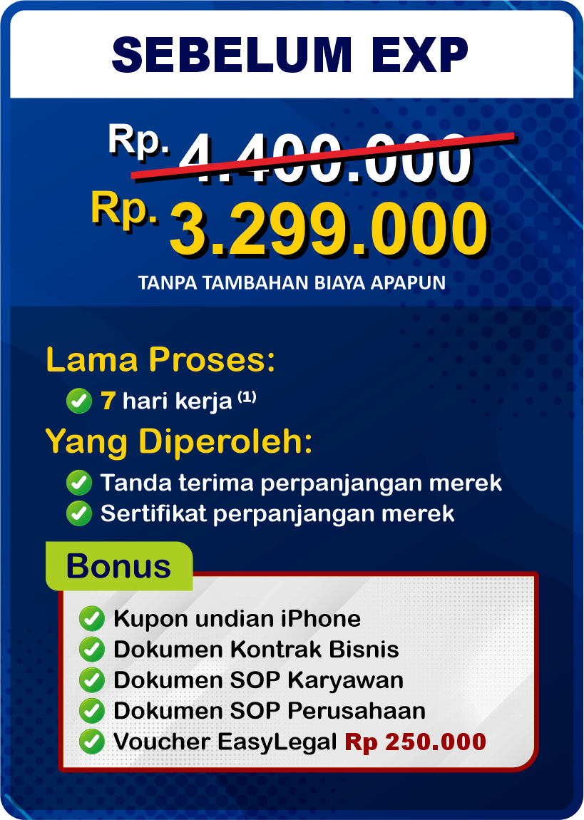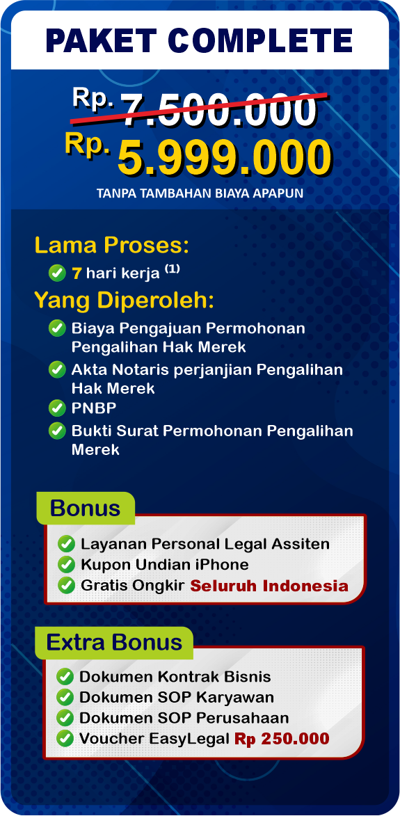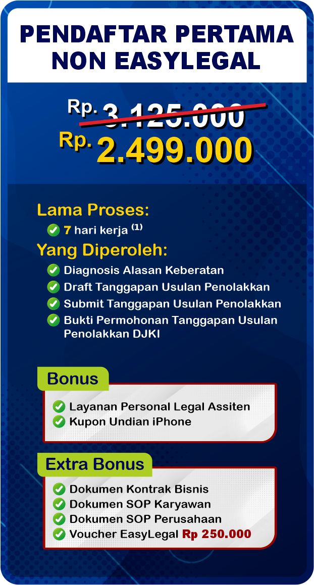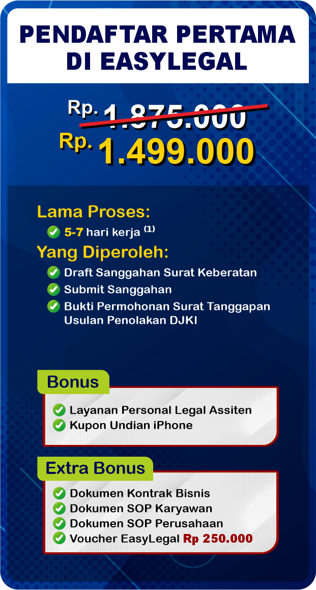 Mendaftarkan merek di Indonesia dapat melindungi hak kekayaan intelektual. Proses ini menjamin hak eksklusif atas merek & mencegah penggunaan merek tanpa izin. Penting bagi bisnis yang fokus pada pertumbuhan dan ekspansi pasar. EasyOffice sebagai jasa pendaftaran merek saat ini mengadakan Legal Festival Special Deal, sebagai bentuk dukungan untuk UMKM Indonesia.