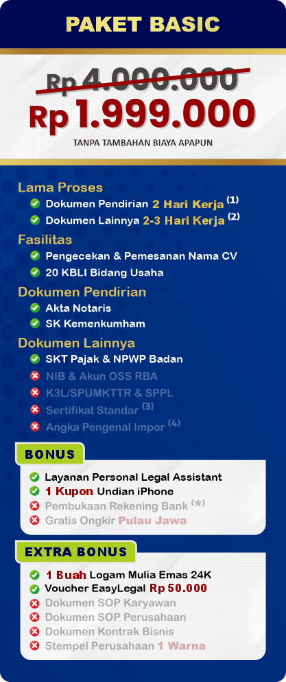 Dapatkan Diskon 50% untuk pendirian CV. Ambil segera kesempatan ini, kuota terbatas!