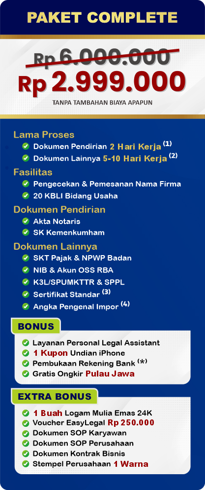 Pendirian Firma di Indonesia dapat memperkuat citra profesional bisnis dengan mengedepankan kemitraan yang solid antar rekan usaha. Struktur yang fleksibel dan berbasis perjanjian kerja sama ini cocok bagi usaha berbasis keahlian maupun kemitraan profesional. EasyOffice kini menghadirkan Legal Festival Special Deal sebagai bentuk dukungan nyata bagi UMKM yang ingin mengembangkan bisnisnya dengan legalitas yang jelas.