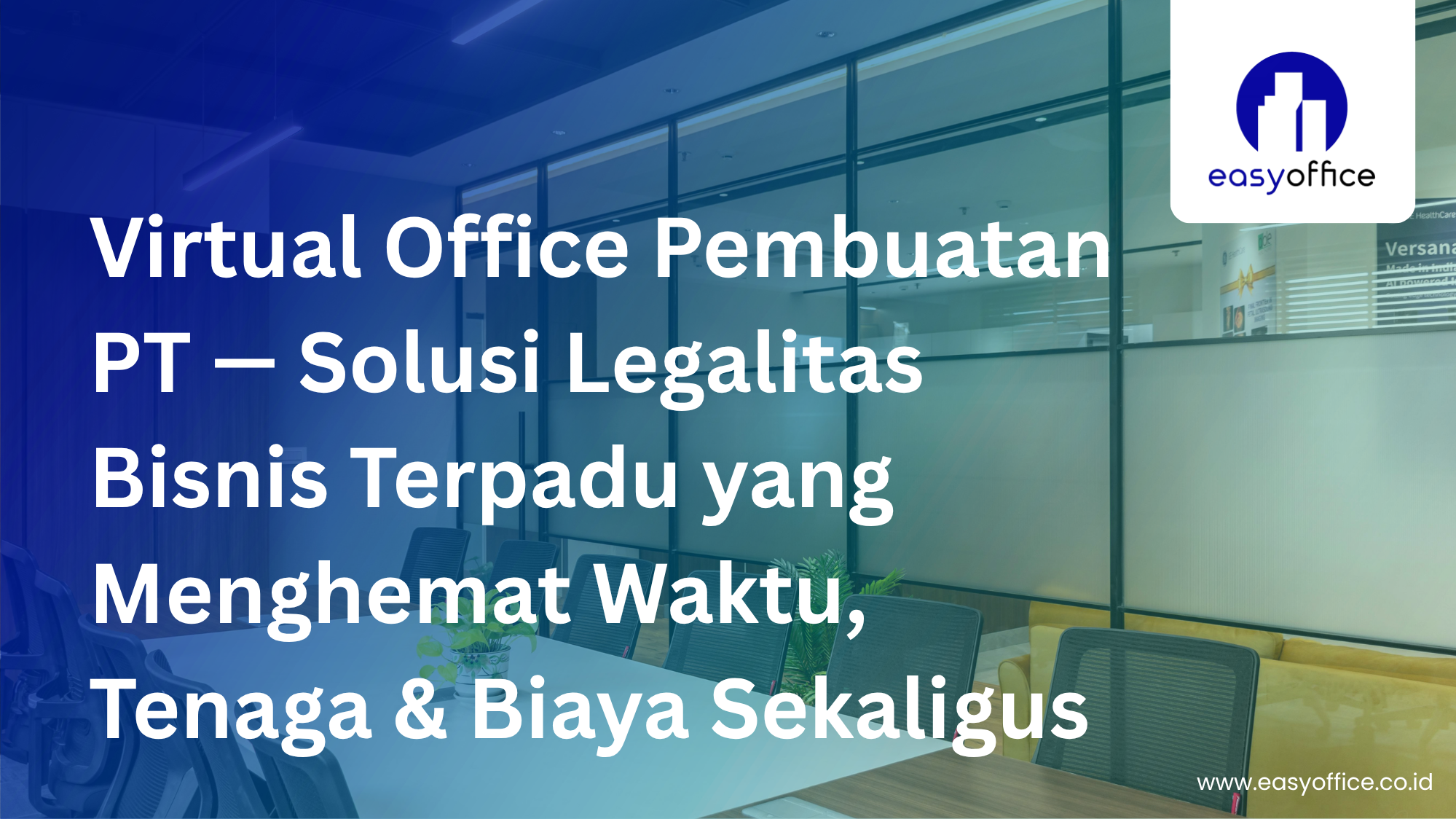 EasyOffice adalah penyedia layanan virtual Office di Bandung, Bekasi, dan Jakarta yang menyediakan alamat bisnis profesional, ruang meeting, layanan resepsionis, serta pengelolaan surat untuk mendukung pertumbuhan bisnis dengan biaya yang lebih hemat dan terjangkau.